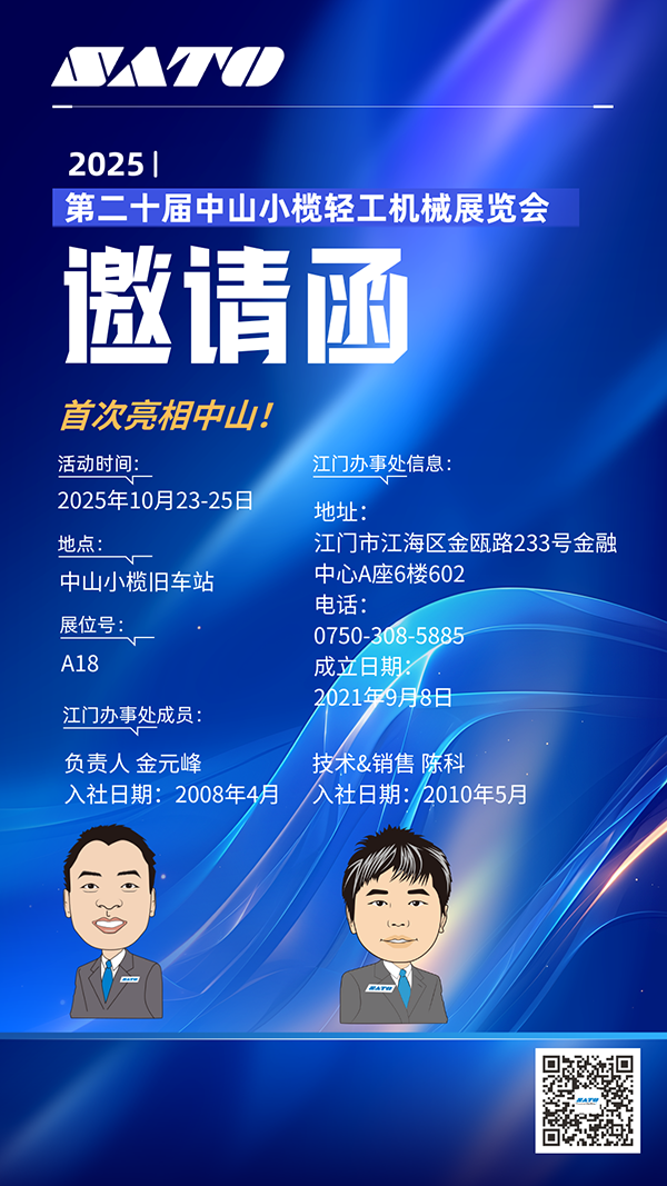 2025年10月23日至25日,2025第二十届中山小榄轻工机械展览会将于中山小榄旧车站隆重揭幕。SATO佐藤中国首次亮相中山,将携旗舰产品及多元应用亮相A18展位,邀您携手解锁工业数字化追溯的无限可能!