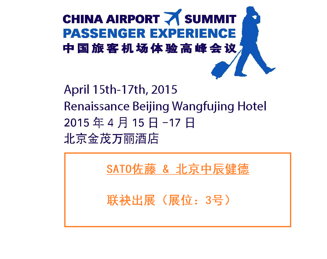 4月15日,2015第六届中国旅客机场体验高峰会议在北京金茂万丽酒店举行,SATO佐藤联合北京中辰健德共同出展,