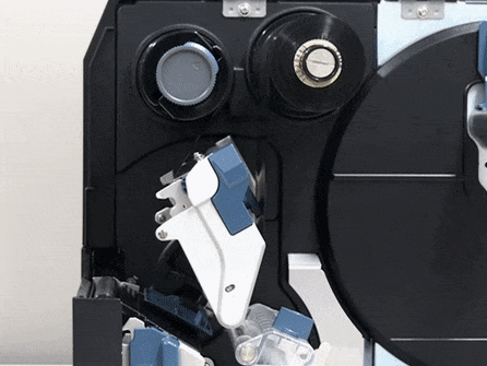 CL4NX智能打印机内置了安装碳带的教学视频,你可以从操作面板的“信息--帮助-碳带安装”中调出视频,一边学习一边操作。(点击观看)