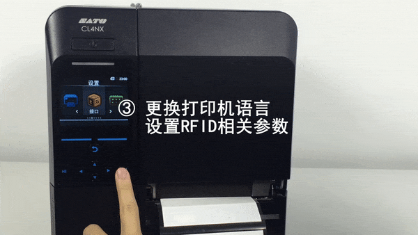 接下来在打印机上选择“接口—RFID”,设置RFID的读取功率、天线高度、写入功率等参数。不同的标签参数设置不同,以IQ400为例,详细参数调整可参考视频(点击观看)。
