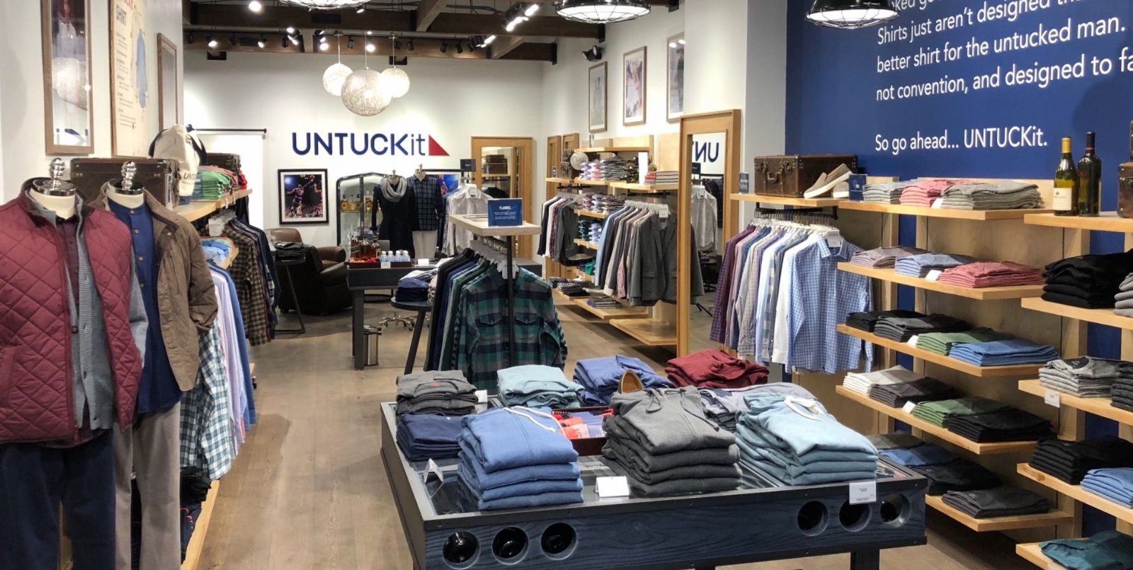 UNTUCKit的零售模式为客户提供独特、便捷的购物体验。当客户进入店铺,导购会帮他们选择一件“试穿”衬衫。在客户确定好尺寸、样式之后,导购能找出一件全新衬衫售卖。因为有很多商品SKU,UNTUCKit要根据需求,确保每个SKU有相应数量的服装。