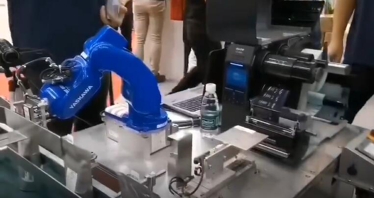 “灵活,精准,省力”,在进门展示区灵活动作的蓝色机械手臂吸引了众多目光。在场观众纷纷拿出手机拍摄,咨询自动贴标的客户更是络绎不绝。SATO的RFID机器人贴标系统,通过稳定发行RFID,应用多轴机械手臂,自动抓取RFID标签(Flag Tag),折压后,准确无误地贴附在液体包装袋的指定位置上。