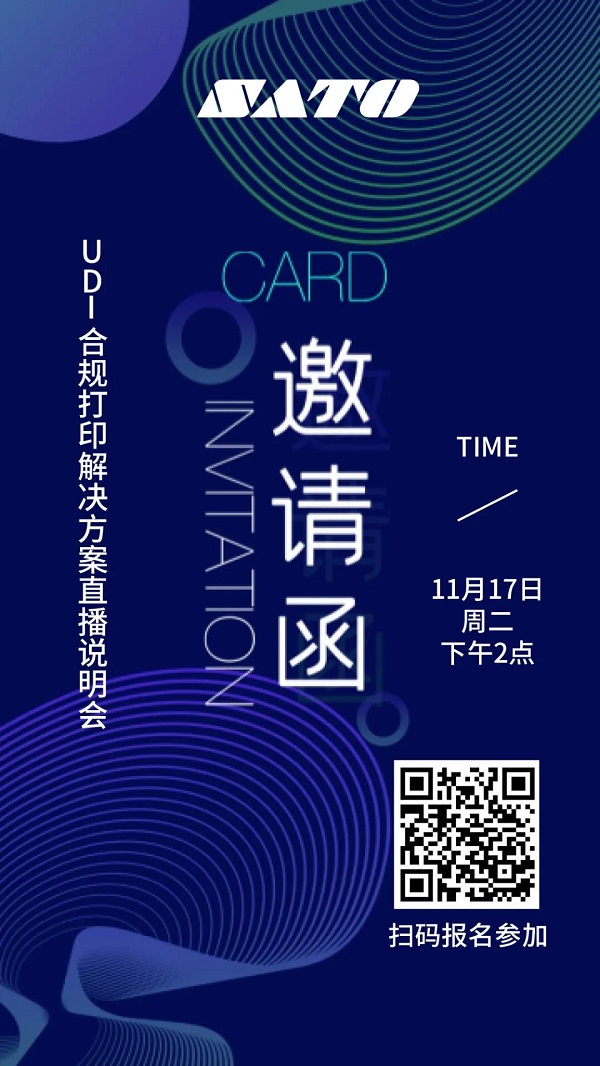 11月17日下午2点,SATO将为大家带来一场线上直播说明会,围绕新产品及UDI合规打印解决方案,带来详细专业的说明,诚邀您扫码参加。