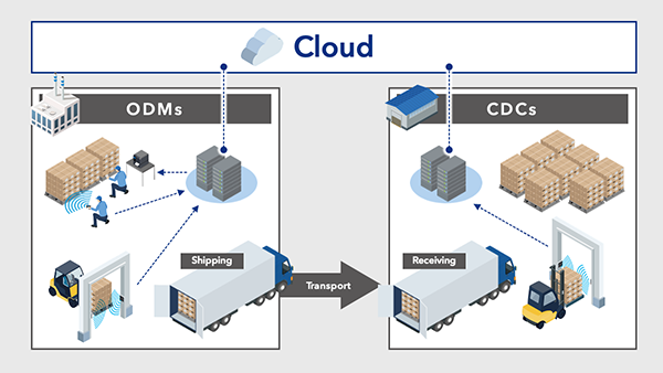 该解决方案通过几个步骤增强了ODM运输流程和CDC入库流程。这些包括引入用户友好的浏览器界面以进行EPC(电子产品代码)请求,,应用RFID标签给零件赋码,建立与产品属性的链接,使用RFID移动扫描仪验证托盘内容, 在运输和接收过程中自动读取RFID, 使用RFID移动扫描器进行高效的信息差异检测, 以及提供浏览器界面以在出库和入库时访问部件数据。