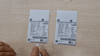无保护涂层热敏纸(左)与优质热敏纸(右)对比