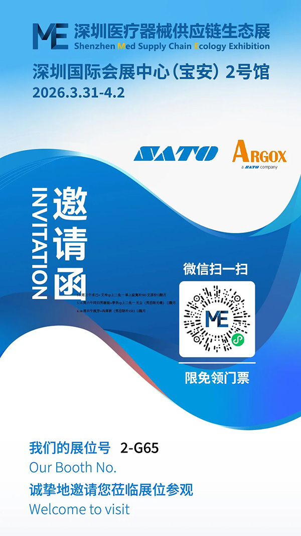 SATO佐藤中国携手ARGOX联合参展,将携全新产品CL4-SXR、SATO耗材及UDI合规打印解决方案惊艳亮相2-G65展位,ARGOX亦将带来AL-4210、SG-2200等经典机型, 邀您一同开启医疗追溯与合规管理的智慧新篇,现场更有丰富产品与多元解决方案等您探索!