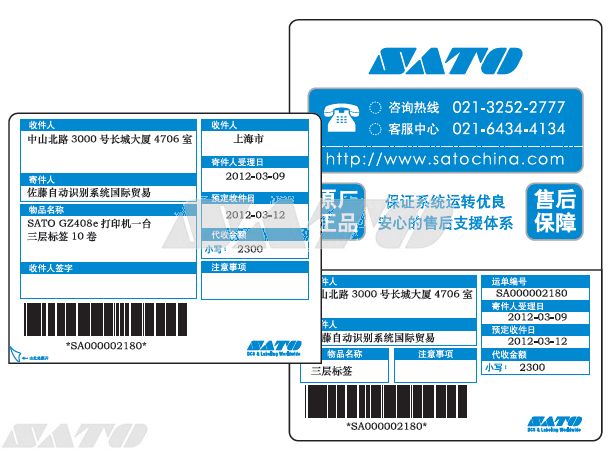 但是,应用物流三层标签,需要选择成熟的标签供应商。标签加工技术上,涂胶太弱,会导致上层面纸因胶弱脱落而影响配送;涂胶太强,则往往容易造成首层面纸被撕破。SATO公司提供高品质可靠的三层标签,其下属标签工厂配备先进印刷设备及技术娴熟的专业工人,以先进工艺和经验管理,为众多的电子商务、物流中心和快递公司交付了上万平米的高品质三层标签产品。