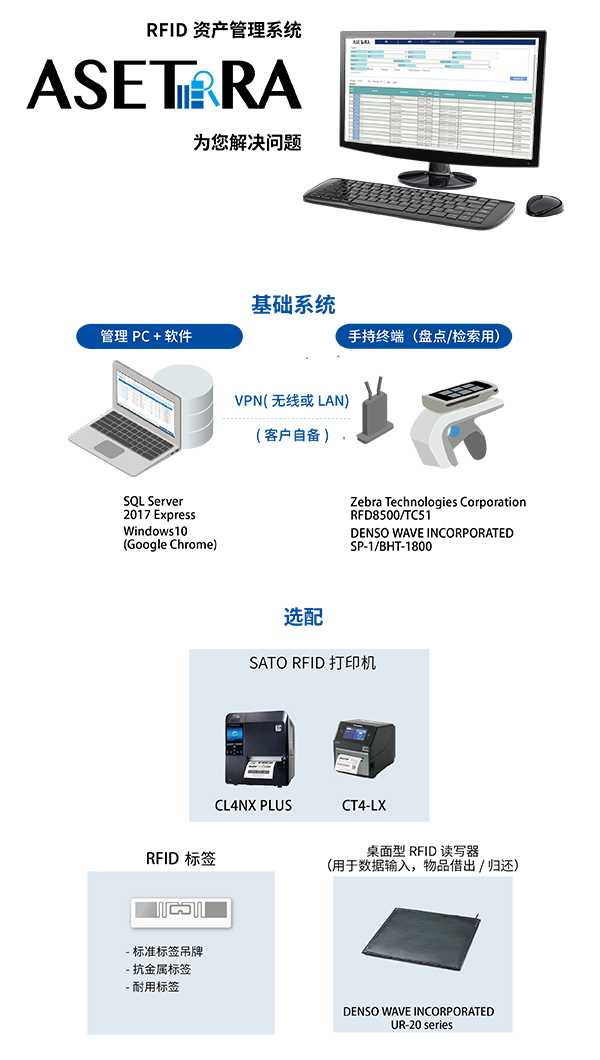选配:RFID标签+RFID打印机+桌面型RFID读写器